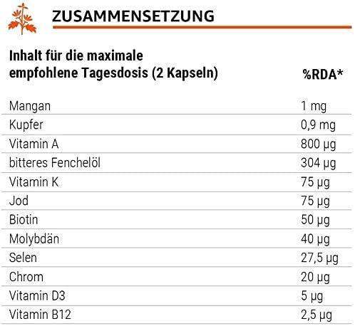 - Nahrungsergänzungsmittel sollten nicht als Ersatz für eine abwechslungsreiche und ausgewogene Ernährung sowie eine gesunde Lebensweise dienen. Die empfohlene tägliche Verzehrmenge darf nicht überschritten werden. Außerhalb der Reichweite von kleinen Kindern lagern. Die Verwendung durch schwangere und stillende Frauen wird nicht empfohlen.